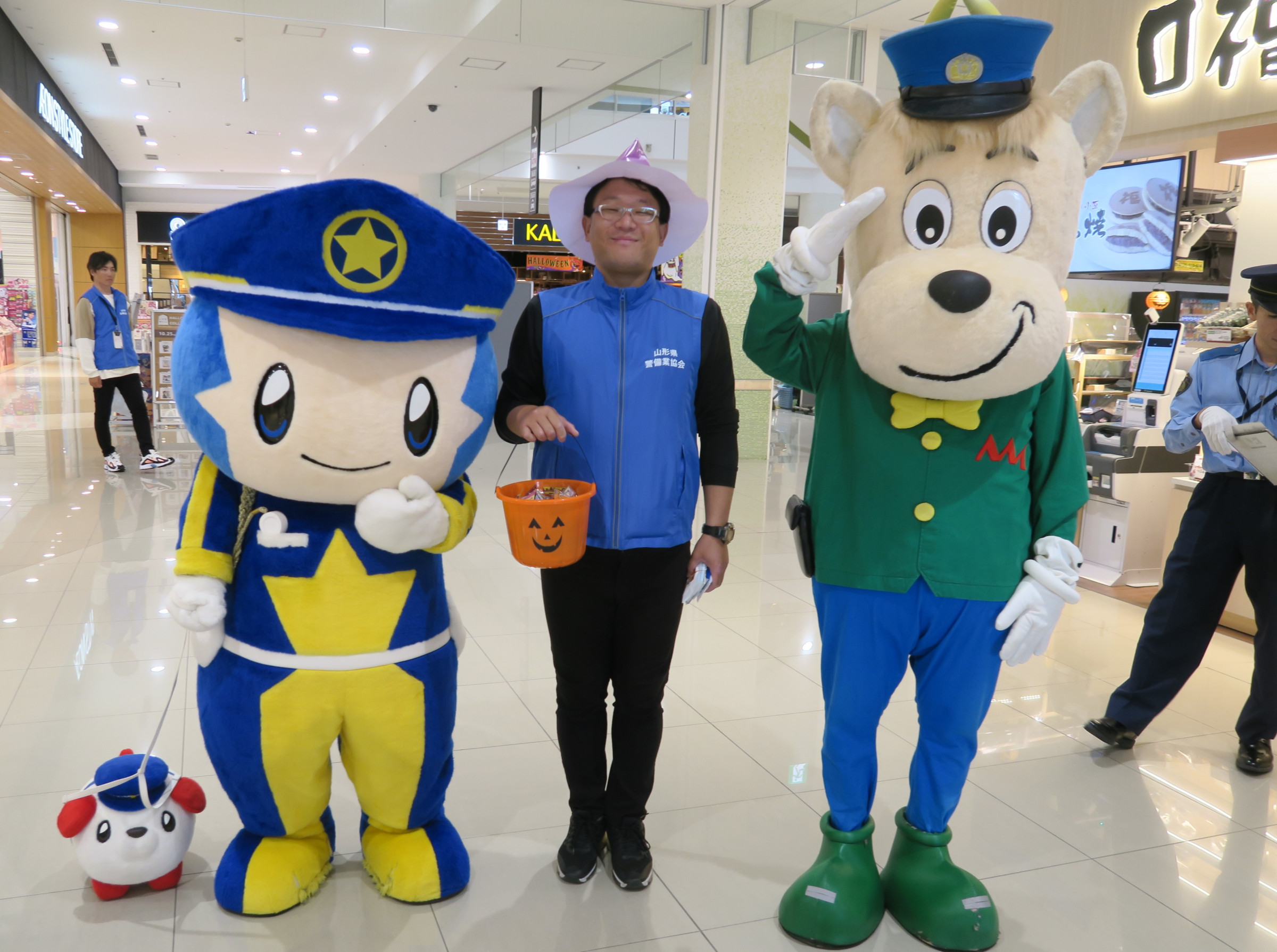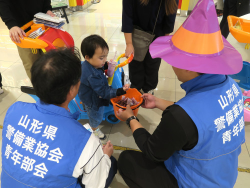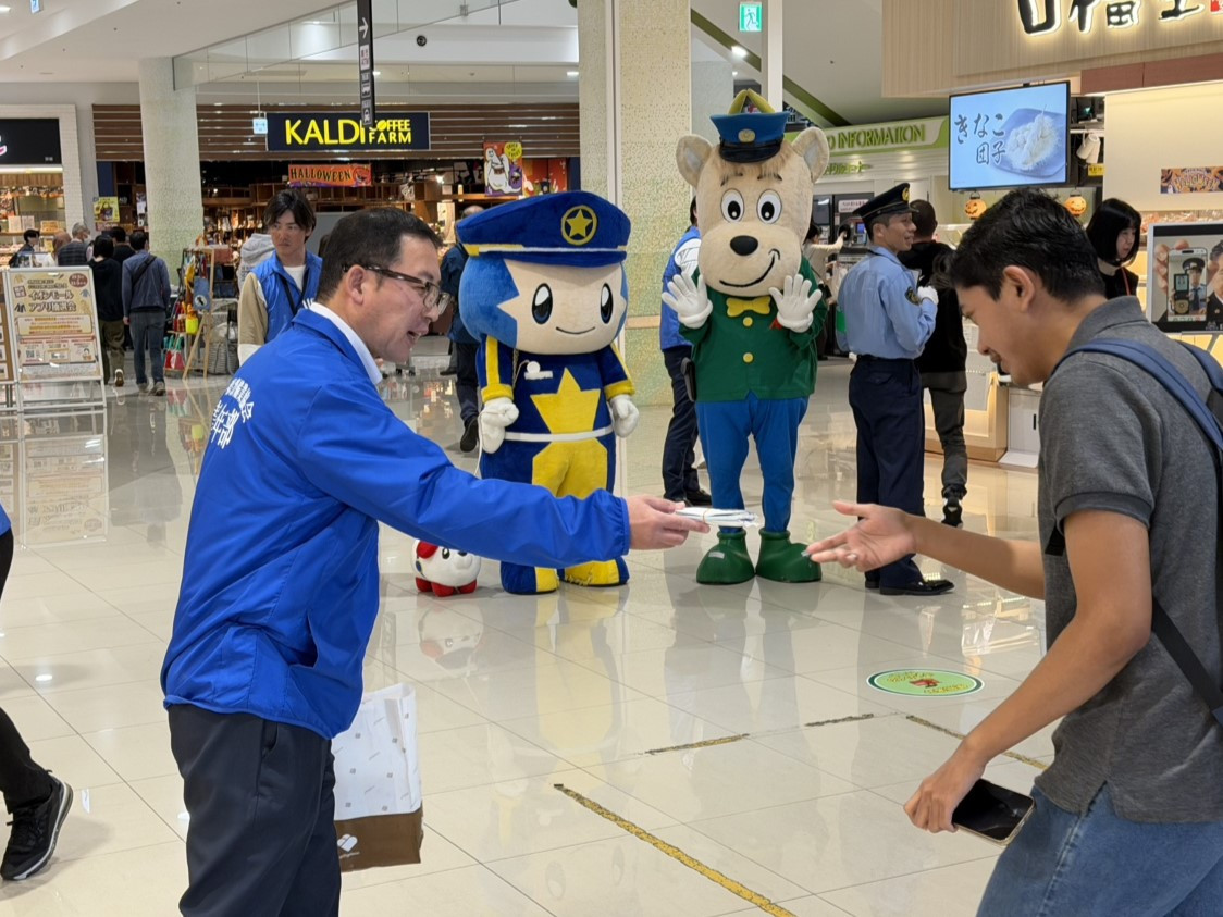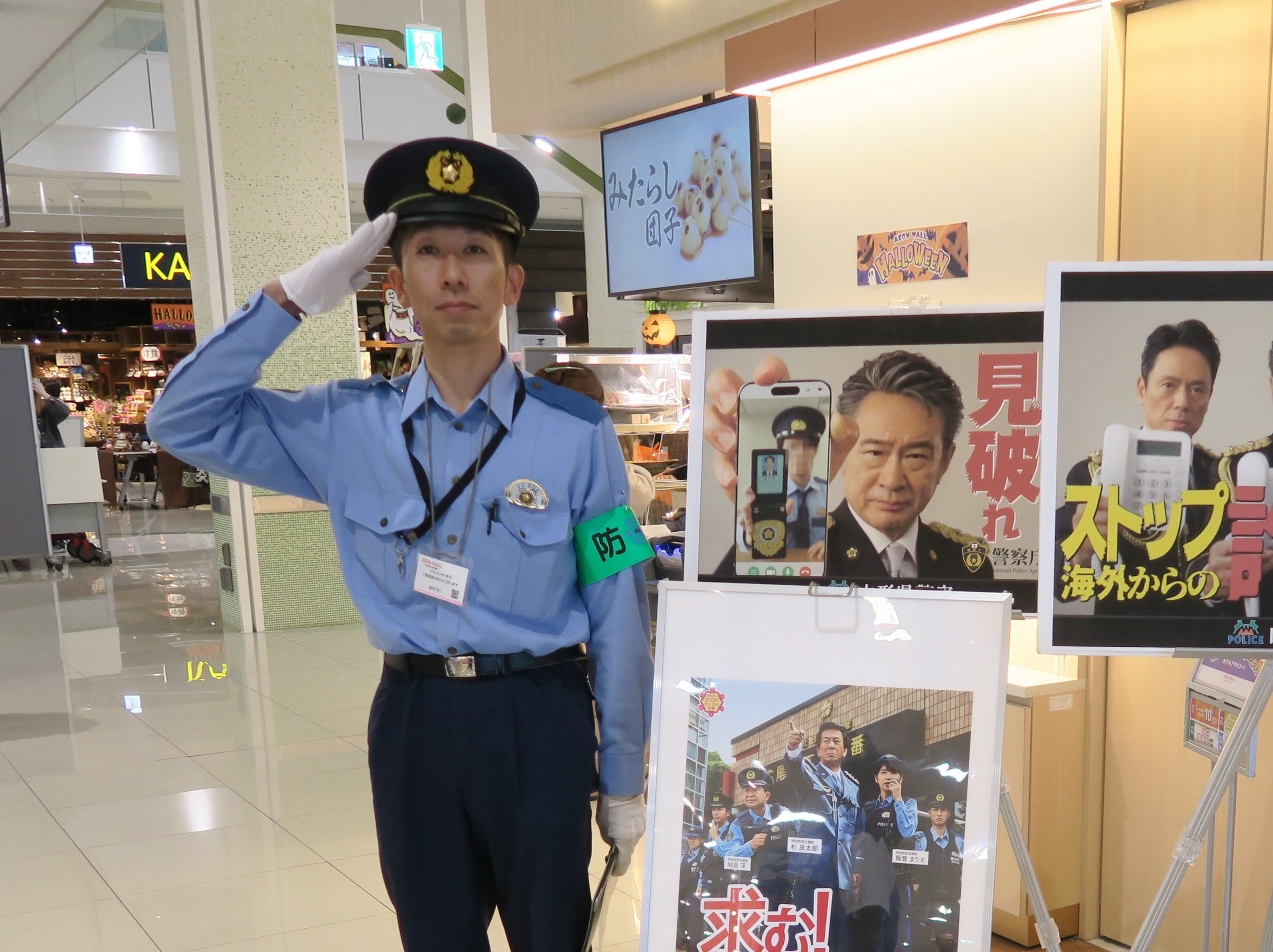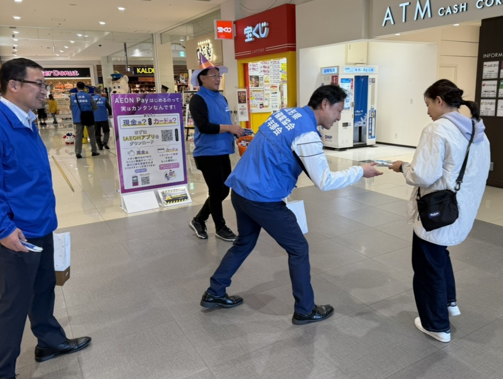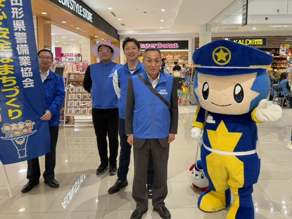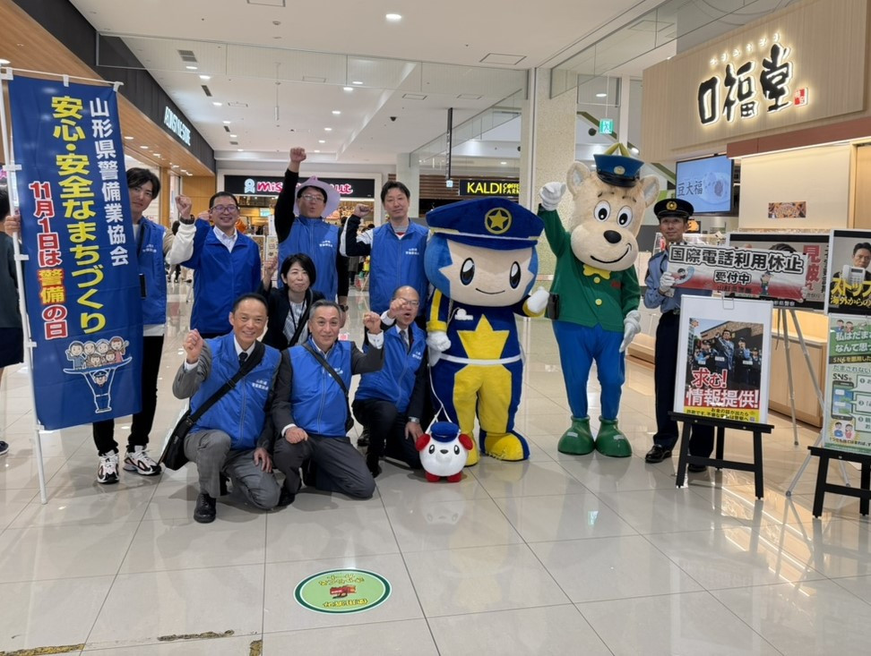〇 10月25日(土)イオンモール天童において「警備の日」広報啓発活動として、青年部会を中心に警察本部生活安全企画課、天童警察署と合同で特殊詐欺被害防止等の広報啓発活動を行いました。